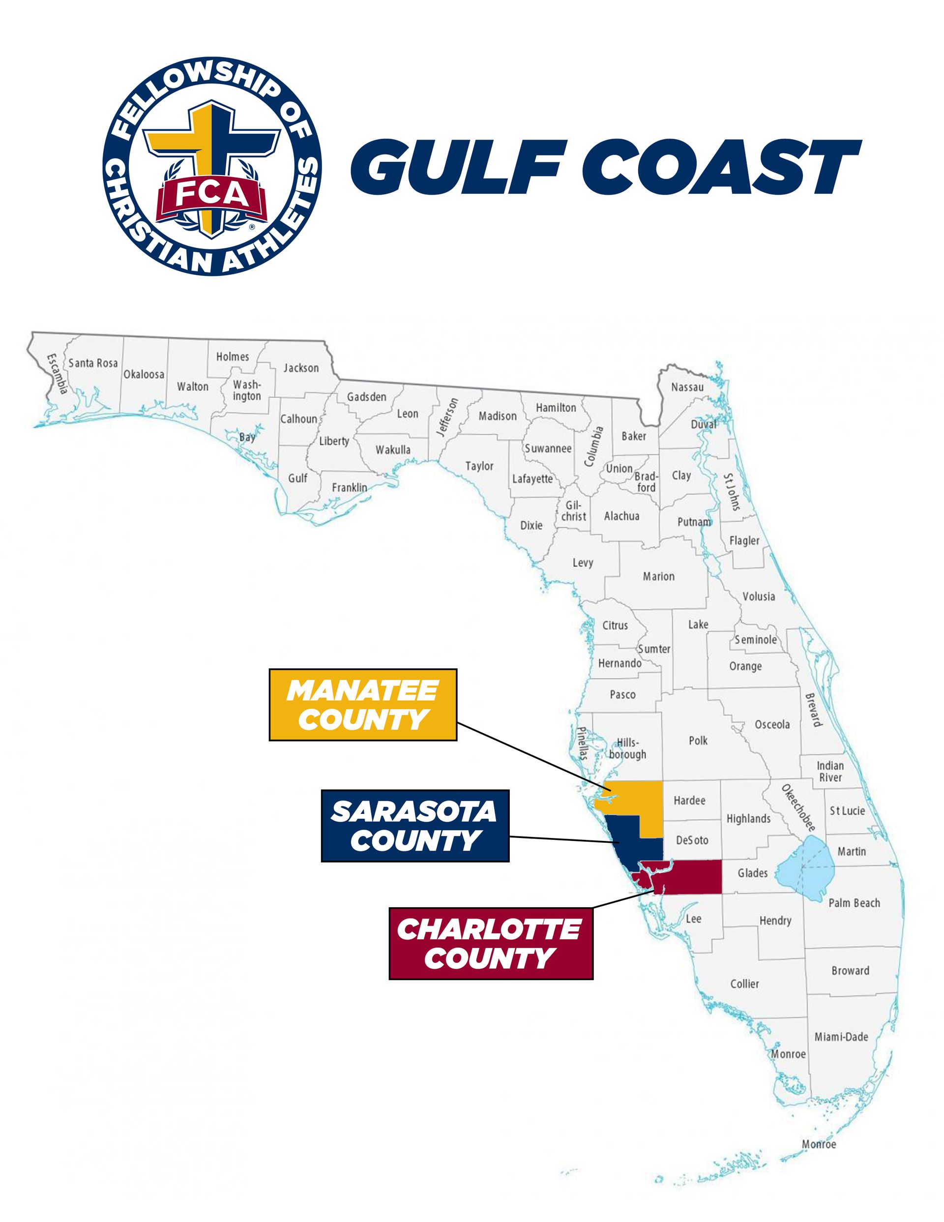 Gulf Coast FCA is part of the larger West Central Florida FCA (REGION 14). Together, we are ministering to some of Florida's most populated cities and counties.